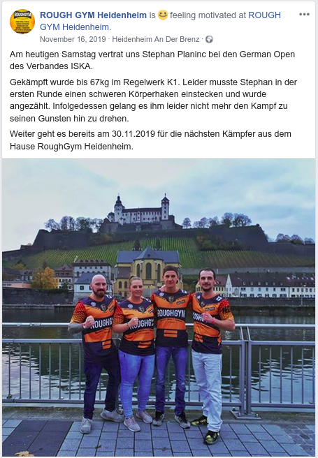 Vor einem Jahr am 30. März 2019, sollte Stephan Planinc, ein Sportler des Rough Gyms Heidenheim, bei der „Zam-Zam Fightnight – Ulm“ in den Ring steigen. Wenige Tage vor der Veranstaltung veröffentlichte Runter von der Matte, eine Kampagne zur Aufklärung von extrem rechten Aktivitäten im Kampfsport, einen Artikel über Planinc.
