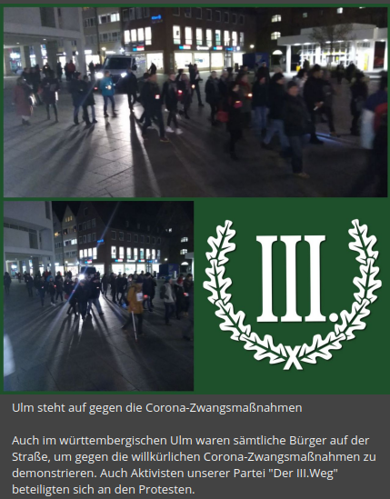 - Am 06.12.21 gibt die neonazistische Partei der Dritte Weg an sich an dem Spaziergang beteiligt zu haben