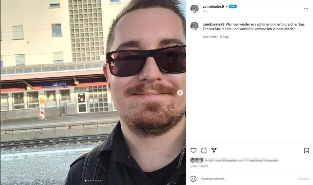 • Alex Hilbig veröffentlichte auf Sozialen Medien Fotos von einem Tagesausflug in Ulm am 05.06.22
