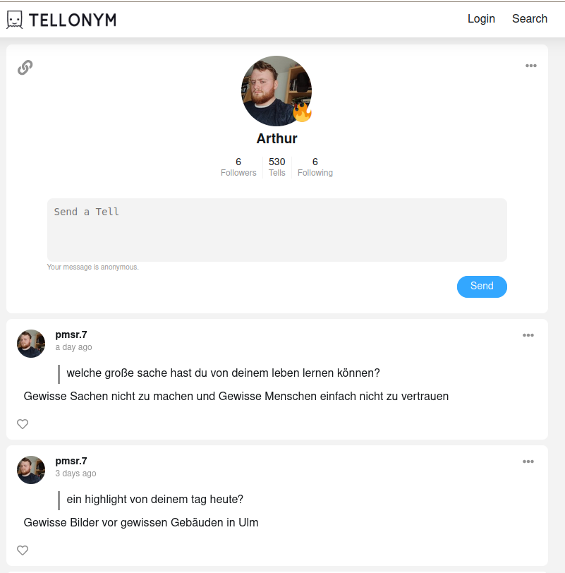 • Arthur spielte am 07.06.22 auf seinem Tellonym Account auf die Aktion an