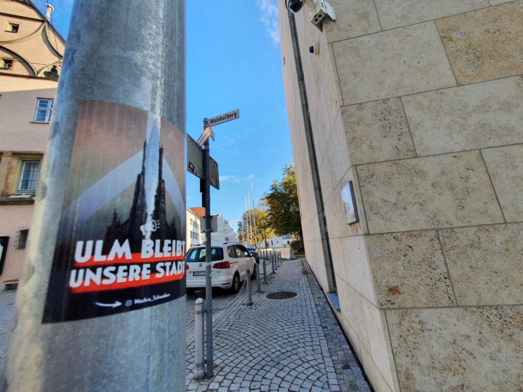 Nach der Demo fanden sich entlang der Route an der Ulmer Synagoge Sticker der IB.